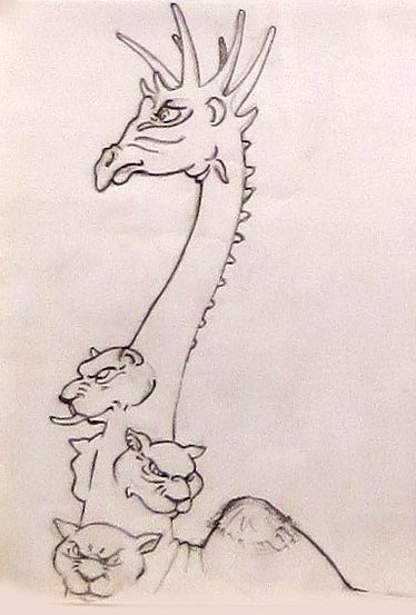 (Ampliar) - Proposta dragolins. Inspirat en el Beatus de Girona. Cavall/lleó. 2017.