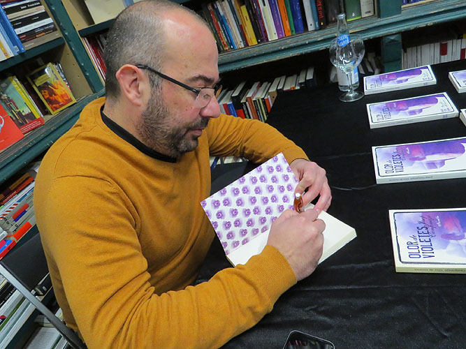 Dins aquest cicle de trobades que convoca els dissabtes a la mateixa llibreria un escriptor gironí de naixement o d'"adopció" per parlar de la seva obra i del seu entorn, el dissabte 16 de gener 2016 va comptar amb Josep Campmajó i Caparrós (Girona, 1968), qui va explicar el seu procés creatiu tot reflexionant sobre el paper creatiu de l'autor i del lector, així com també de les preguntes que ens podem fer entorn del concepte artístic. L'any 2009 va rebre el premi Just Manel Casero per la seva novel·la "Olor de violetes". L'autor va respondre a les qüestions que varen plantejar els assistents.