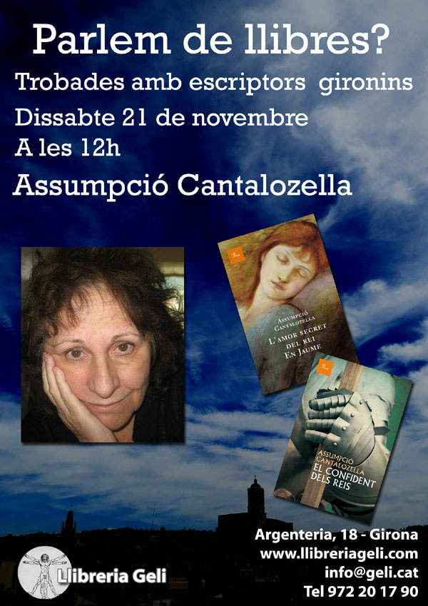 Dins aquest cicle de trobades que convoca cada dissabte a la mateixa llibreria un escriptor gironí de naixement o d'"adopció" per parlar de la seva obra i del seu entorn, el dissabte 21 de novembre va comptar amb Assumpció Cantalozella, qui va comentar les seves últimes novel·les ("El confident dels reis", "L'amor secret del rei En Jaume", "El retorn d'Hug Roger", "Corpus de Sang"), i també del seu procés creatiu, la importància dels entorns geogràfics i històrics en la seva obra, i els seus inicis en els món de la literatura. Cantalozella va respondre a les qüestions que varen plantejar els assistents.