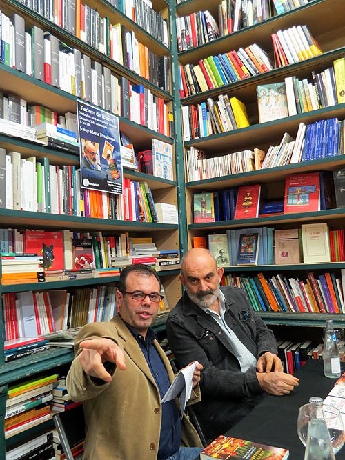 Dins aquest cicle de trobades que convoca cada dissabte a la mateixa llibreria un escriptor gironí de naixement o d'"adopció" per parlar de la seva obra i del seu entorn, el dissabte 7 de novembre va comptar amb Josep Maria Fonalleras (Girona, 1959), qui va comentar les seves últimes novel·les ("Un any de divorciat", "La sala d'estar és un camp de futbol", "Climent"), i també del seu procés creatiu i les diferències entre escriure articles diaris i escriure una novel·la. L'autor va respondre a les qüestions que varen plantejar els assistents. ![]() (Ampliar) - Josep Maria Fonalleras durant la trobada. ![]() (Ampliar) - Josep Maria Fonalleras i Xavier Delòs durant la trobada. [Més imatges]------------- |