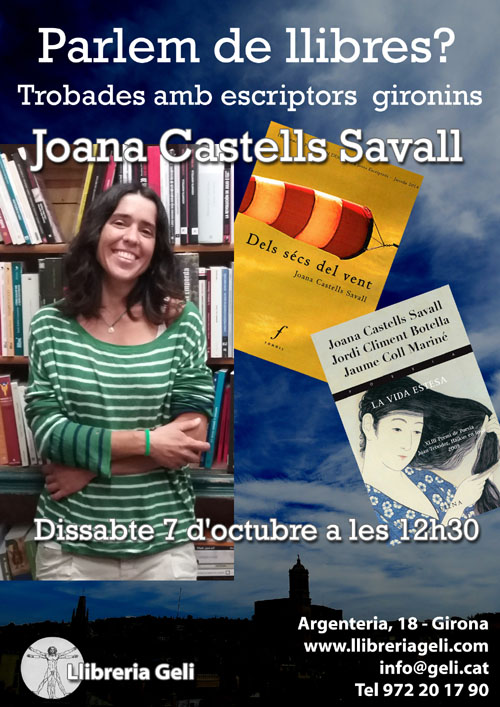 Dins el cicle de trobades amb escriptors gironins a la Llibreria Geli, que sota el títol de "Parlem de llibres?" convoca els dissabtes a la mateixa llibreria un escriptor gironí de naixement o d'"adopció" per parlar de la seva obra i del seu entorn, i, dins la III temporada, el dissabte 7 d'octubre 2017 va comptar amb l'autora i correctora Joana Castells i Savall (Barcelona, 1979), per parlar del mó de la correcció literària i periodística.