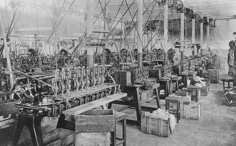 (Ampliar) - Secció de màquines per foradar botons. 1910-1920. Autor desconegut. CRDI - Ajuntament de Girona.[Més imatges]-------------  |