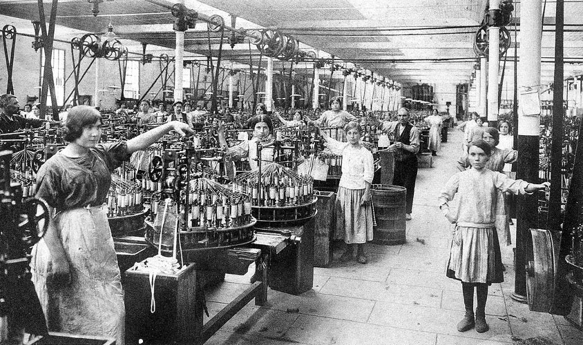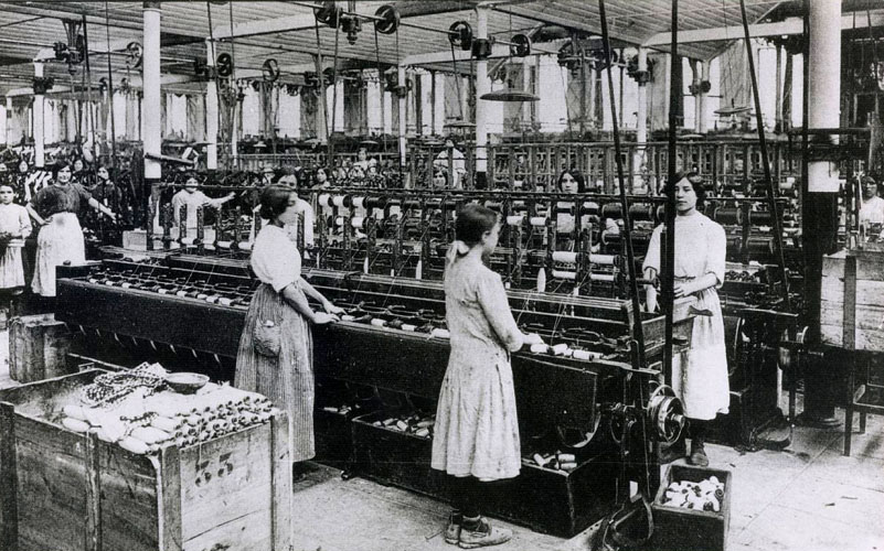 (Ampliar) - Dones treballant a la secció de telers a la fàbrica Grober. 1910-1920. Autor desconegut. CRDI - Ajuntament de Girona