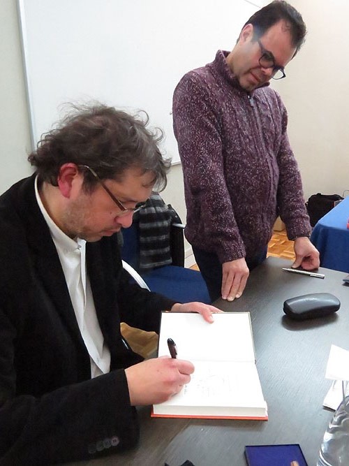 (Ampliar) - Xavier Delòs i Joan-Lluís Lluís, durant la signatura de llibres.