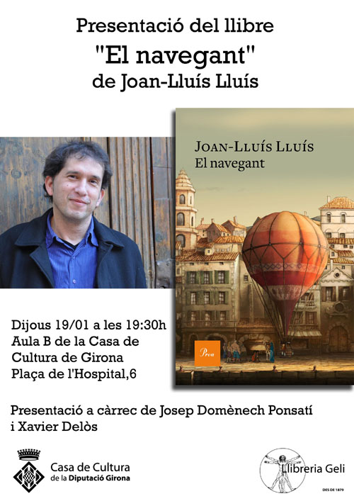 El dijous 19 de gener 2017, organitzada per la Llibreria Geli i la Casa de Cultura de Girona, va tenir lloc la presentació del llibre "El navegant", de Joan-Lluís Lluís, amb la participació de Josep Domènech Ponsatí i Xavier Delòs. Joan-Lluís Lluís (Perpinyà, 1963) és autor, entre d'altres, de "Les cròniques del déu coix", "Aiguafang" (premi de la Crítica Serra d'Or 2008), "A cremallengua, elogi de la diversitat lingüística", o "El dia de l'ós" (premi Crexells 2004).
