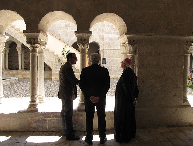 - L'arquitecte autor del projecte Josep Pla i de Solà-Morales explica els treballs al conseller Mascarell i al bisbe Pardo.