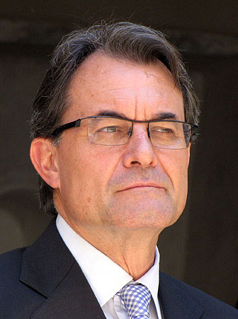 - El president de la Generalitat, Artur Mas, durant la seva intervenció, amb l'alcalde de Girona Carles Puigdemont.
