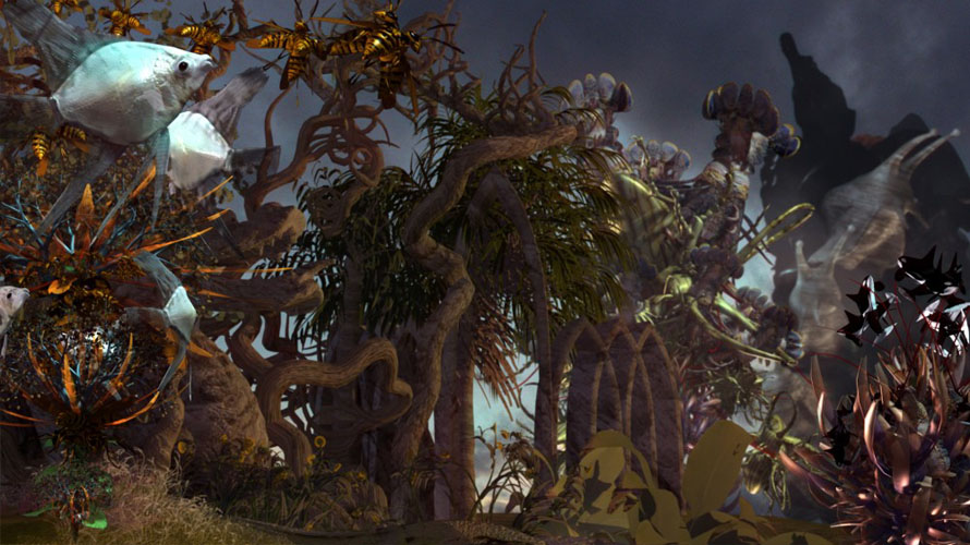 En plasts suspesos, es projecten videocreacions que expressen molts sentiments i sensacions d'aquesta noia que corresponen a les emocions principals de la nostra existència, com la buidor, el plaer, el dolor, la guerra, o la mort. A través de les imatges projectades en aquests dotze plats, el visitant podrà sentir les diferents sensacions que té la protagonista al llarg d'aquest viatge oníric que la porta pel cicle de la vida. Una història que s'explica amb elements molt diversos: amb objectes, imatges, pensaments i músiques, com dotze passatges diferents que porten l'un a l'altre i que culminen en el recinte central on tindrà lloc el sopar d'El Somni.