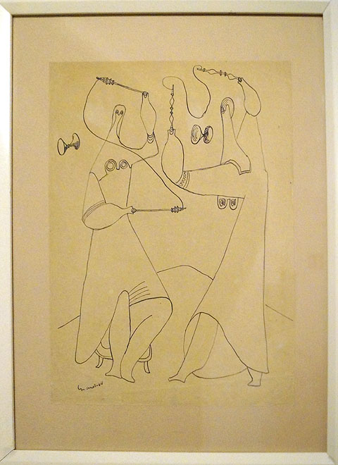 (Ampliar) - Parella jugant al diàbolo. Eugenio Granell. 1944. Tinta sobre paper.