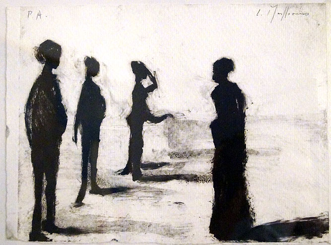 (Ampliar) - Tres figures femenines. Fidel Aguilar. Ca. 1916. Nogalina sobre paper.