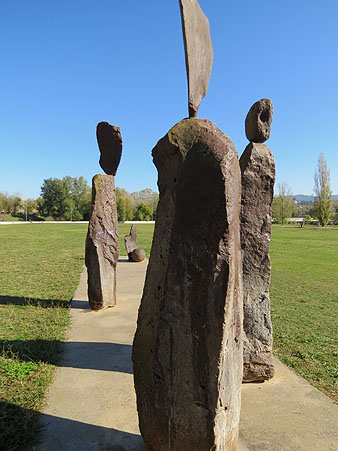 El parc de les Ribes del Ter va ser construït a meitat dels anys 90. Arran de la planificació urbanística del sector de Fontajau i la construcció del pavelló, es va ordenar l’espai situat al marge esquerre del Ter en aquest sector. A més de la construcció de la passera de vianants, es va elevar lleugerament el nivell d’aigua del riu gràcies a una petita resclosa situada just al peu de la passera, amb el que es va aconseguir augmentar la superfície d’aigües obertes i donar una làmina d’aigua de molta més amplada, en la qual hi han crescut canyissars, joncs i altra vegetació de ribera. El conjunt escultòric de metall "La família" de Xavier Corberó representa el moment de fer un berenar. La cistella a prop de la família i el fet de que l’escenari tingui lloc en un espai obert ajuda a entendre l’acció de la berenada entre les figures humanes fetes de metall representades de manera tan esquemàtica.