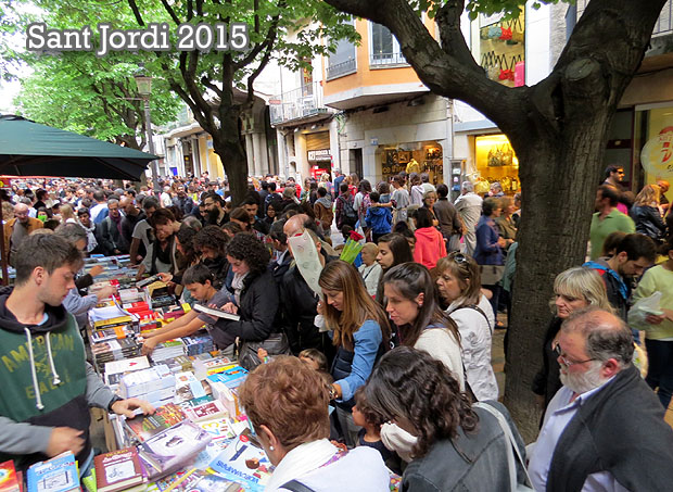 La Diada de Sant Jordi, Patró de Catalunya, és tradicionalment el dia dels enamorats, essent el costum, des de el segle XV, regalar una rosa vermella com la sang a la estimada. A inicis del segle XX el costum es popularitza i a finals del primer terç d'aquest segle s'hi afegeix el costum de regalar un llibre al noi, en motiu del dia del llibre. El 23 d'abril 2015 va tenir lloc a diversos indrets de Girona (plaça Catalunya, Rambla de la Llibertat, Argenteria, etc) el tradicional muntatge de parades de llibres i roses.