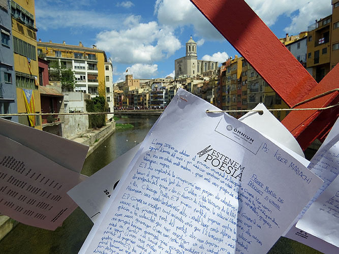 Activitat efímera, literària i poètica al pont de les Peixateries Velles, organitzat per Òmnium Gironès. 21 fotografies. |