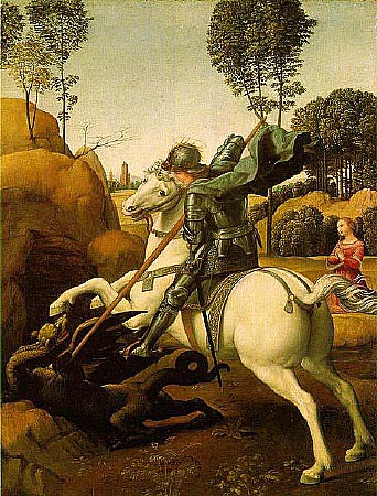 La història per la qual és conegut el sant arreu del món, la mort del drac que pretenia menjar-se una donzella, va ser escrita per Santiago de la Vorágine al segle XII en la seva obra “La Llegenda Àurea”, narració que aviat es va escampar per tota Europa fins arribar a tota la Corona d'Aragó.