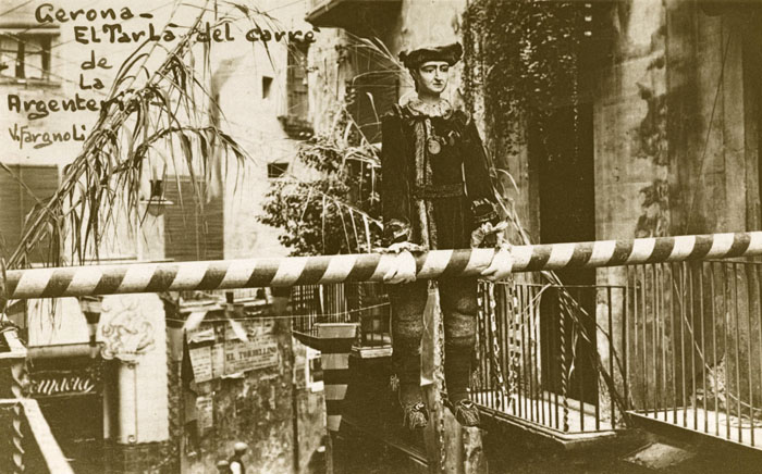 El Tarlà penjat al carrer de l'Argenteria durant les festes de Primavera. 1942. Salvador Crescenti Miró. CRDI - Ajuntament de Girona - (Ampliar)