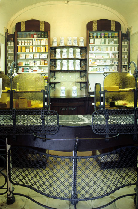 Interior de la Farmàcia Saguer (antiga farmàcia Masó), al carrer Argenteria. El disseny i el mobiliari són de l'arquitecte Rafael Masó. 2000. Jordi Ribot Puntí. CRDI - Ajuntament de Girona - (Ampliar)
