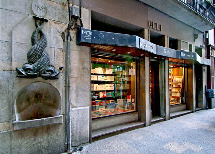 La font del Pou de la Cadena i la llibreria Geli. 2010. Jordi Soler Font. CRDI - Ajuntament de Girona - (Ampliar)