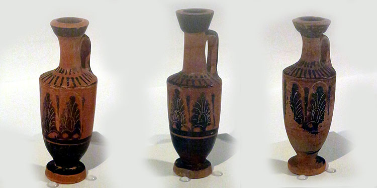 Àmfora àtica. Segle VIII aC. Necròpoli del Kerameikos (Atenes). Adquirida per la Junta de Museus de barcelona a l'antiquari parisenc Gedalakis el 1906. S'exposà al Museu d'Art i d'Arqueologia del Parc de la Ciutadella.