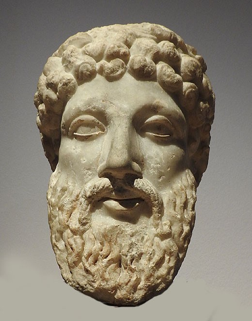 (Ampliar) - Herma de marbre. Còpia romana d'un model grec. Segle II dC. Col·lecció Raxa (Mallorca). Adquirida el 1922 per la Junta de Museus. A partir de 1935 s'exposà a la Secció Romana del nou Museu d'Arqueologia.