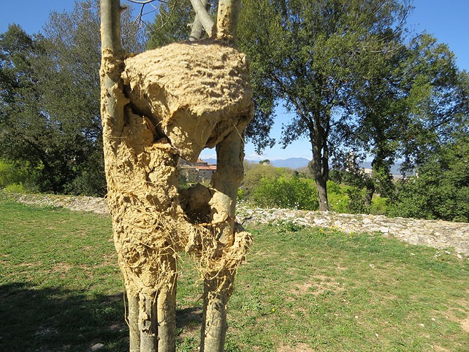 (Ampliar) - Instal·lació a Torre Gironella - Camí de les Creus. A Girona, a cavall entre la Vall de Sant Daniel, el Calvari i la muntanya de la O, ha creat les seves instal·lacions naturals els artistes Lesley Yendell i Lluís Hermosilla, Ariane Patout i René Müller, Joan Farré i Joan Oms, Assumpció Mateu i Teymur Faris, Jofre Oliveras i Martí Ferrer, Montse Nadal, i Anna Smierzchalska.