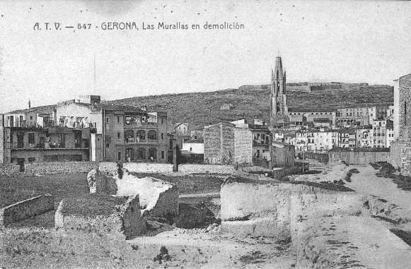 El baluard de la Santa Creu, poc abans del seu enderroc, 1901-1902. Fotografia: Ajuntament de Girona CRDI. Reconstrucció: Museu d'Història de la Ciutat