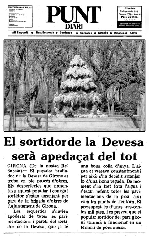 (Ampliar) - Notícia de la reparació del Brollador. Article del diari "El Punt" del 8/8/1981.