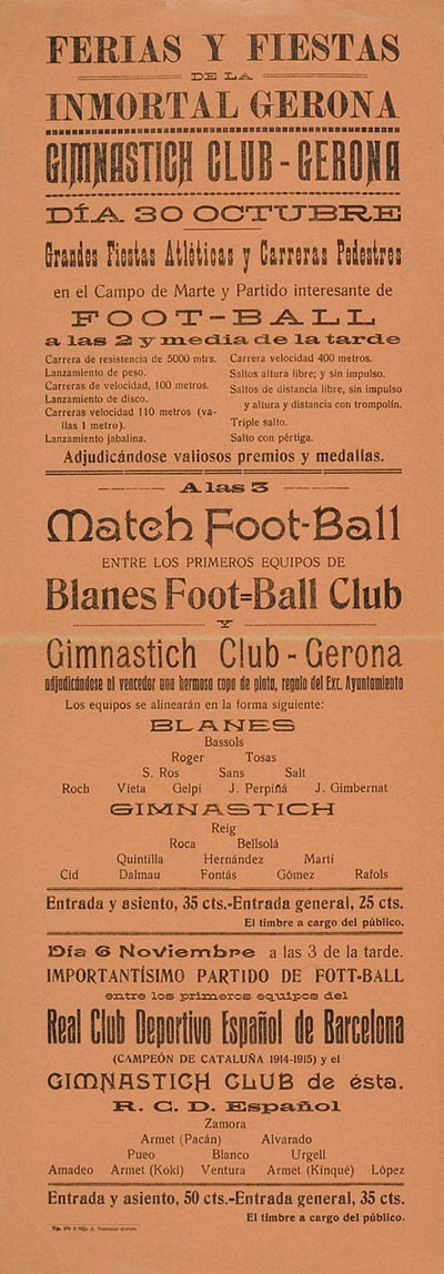 (Ampliar) - Programa de les activitats esportives celebrades els dies 30 d'octubre i 6 de novembre en el marc de les Fires i festes de Sant Narcís al Camp de Mart. 1916. CRDI - Ajuntament de Girona.