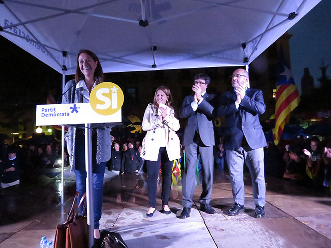 El dilluns 18 de setembre 2017, el President Carles Puigdemont va omplir completament la plaça Independència en un acte emmarcat en la campanya pel referèndum de l'1-O, acte en el que també varen participar amb els seus parlaments l'alcaldessa de Girona Marta Madrenas, l'alcalde de Besalú i vicepresident de la Mesa del Parlament, Lluís Guinó, i la coordinadora general del PDeCAT, Marta Pascal.