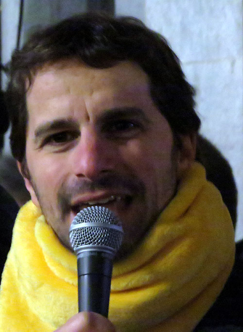 (Ampliar) - Sergi Font, president d'Òmnium, durant el seu parlament al final de la concentració. [Més imatges]------