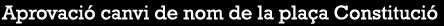 En el ple del dilluns 12 de febrer 2018, que es va poder seguir a través de dues pantalles instal·lades a l'entrada del consistori, l’Ajuntament que presideix Marta Madrenas va aprovar amb els 17 vots a favor de l’equip de govern de CiU més els d’ERC-MES i la CUP, el canvi de nom de la “plaça Constitució” pel de “plaça 1 d’Octubre del 2017”. El PSC, Ciutadans i el PP, que ja havien votat en contra del canvi durant la comissió del Nomenclàtor, s’hi van oposar.
