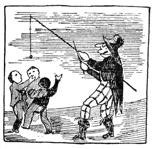 Els que el portaven penjat, sense moure's, havien d'evitar-ho fent a cada pas un saltet (ara a la dreta, ara a l'esquerra) amb forçades contorsions perquè el paper no es mantingués quiet. En el darrer compàs feien una mitja volta, sense moure mai els braços, quedant cadascun d'ells al lloc on estava l'altre. I aleshores esponien: "