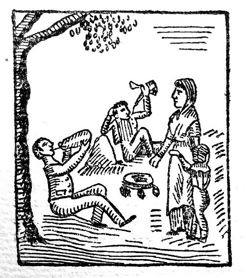 (Ampliar) - Gravat gironí antic amb una representació d'activitats de Carnestoltes.