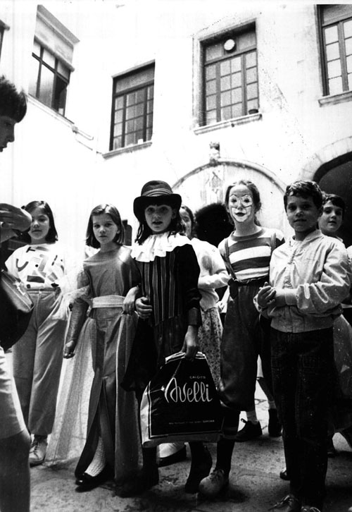 (Ampliar) - Carnestoltes a l'entrada de l'Ajuntament de Girona. 1985-1995. Carles Sans Gutiérrez. CRDI - Ajuntament de Girona.