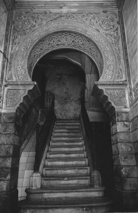 (Ampliar) - Ornamentació del vestíbul d'accés a l'escala de l'habitatge de la travessia de l'Auriga número 8. 1984. Ramon Vilà. CRDI - Ajuntament de Girona.