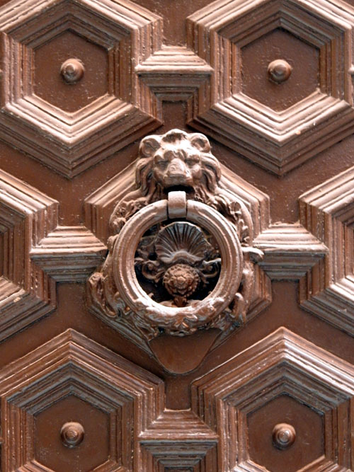 (Ampliar) - Detall de la porta de l'habitatge de la travessia de l'Auriga número 8.