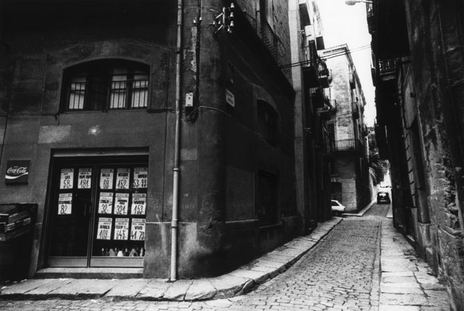 El carrer de l'Auriga. Al fons, la pujada de la Mercè. 1984. Jordi Soler. CRDI - Ajuntament de Girona - (Ampliar)