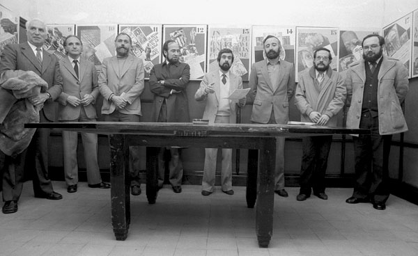 Inauguració del local de l'ADAC, antic local de la CNT. Entre els assistents hi ha el diputat socialista Joan Manuel del Pozo; els diputats al Parlament de Catalunya Ricard Masó, de Convergència, i Marçal Casanovas, d'ERC; el president de la Diputació, Arcadi Calzada; el tinent d'alcalde d'Ensenyament, Antoni Domènech, que representava l'alcalde; el regidor Joan Miró i el president d'Òmnium Cultural a Girona, Miquel Vidal. 15/12/1982. Dani Duch. INSPAI - Diputació de Girona - (Ampliar)
