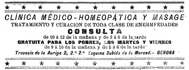 Anunci d'una clínica homeopàtica a la travessia de l'Auriga. Publicat al 'Diario de Avisos y Notícias' del 1/5/1901 - (Ampliar)