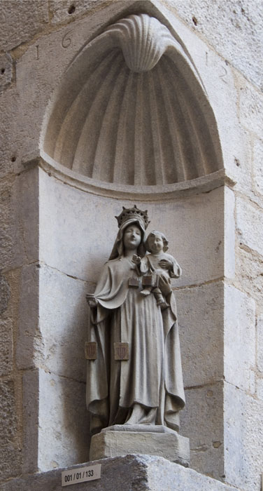 (Ampliar) - Mare de Déu de la Mercè, instal·lada en una fornícula a la cruïlla del carrer Nou del Teatre amb la plaça del Pallol. 2007. Jordi S. Carrera. CRDI - Ajuntament de Girona.