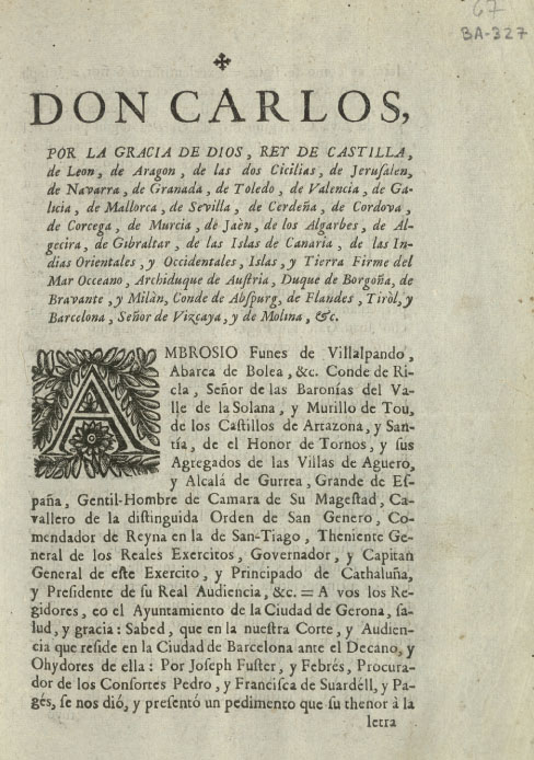 (Ampliar) - Lletres citatòries expedides per la Reial Audiència sobre conflicte entorn de molins i aprofitaments de la sèquia Monar. 1771. Fons Ajuntament de Girona.