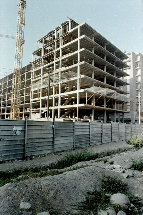 (Ampliar) - Obres de construcció d'un edifici al carrer Sèquia, 7. 1980. Joaquim Curbet Hereu. CRDI - Ajuntament de Girona.