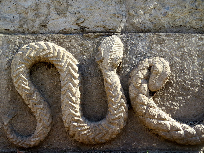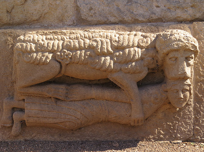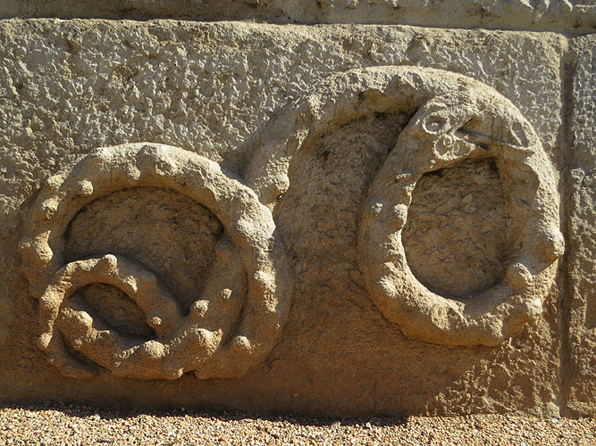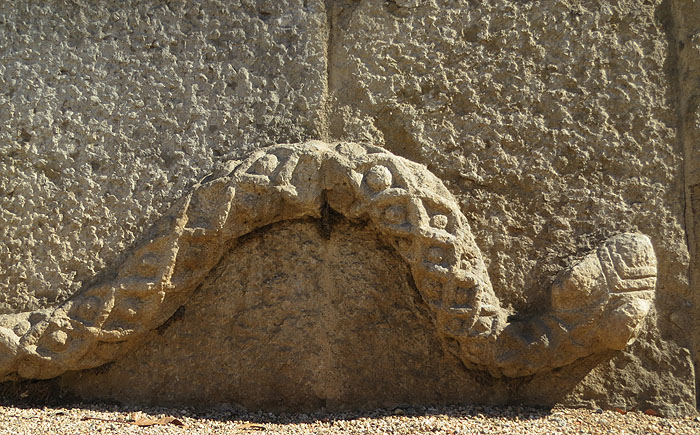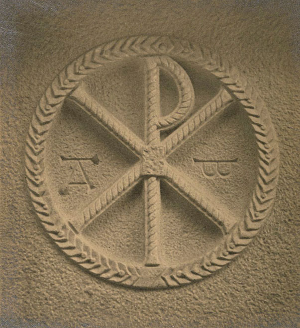 (Ampliar) - Detall del crismó encastat en el mur del Cementiri Municipal de Girona, obra de Rafael Masó. 1970. Autor desconegut. CRDI - Ajuntament de Girona.