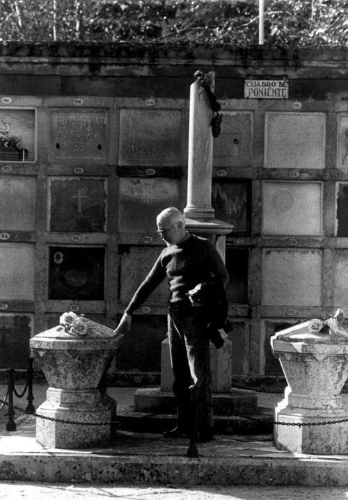 (Ampliar) - Lluís Bosch Martí visita les tombes de Ferrández i Bellés. 1983. Josep Maria Leanger. CRDI - Ajuntament de Girona.