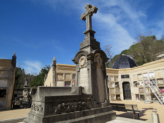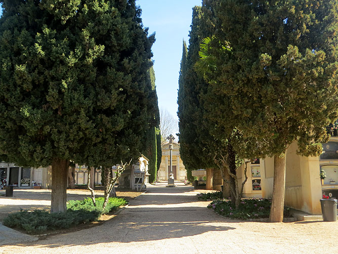 Història. L'origen del cementiri municipal se situa en l'Ordre de Carles III de 1787, que prohibia enterrar a espais annexos a les esglésies i altres indrets urbans per raons sanitàries i urbanístiques, i ordenava la construcció de nous recintes als afores de les ciutats (1) . A Girona, però, a la pràctica, la norma només es va aplicar a partir del primer terç del segle XIX, moment al qual correspon la primera ordenació del cementiri gironí (1821-1829). La burgesia gironina va ser qui imposà les formes artístiques, des dels nínxols seriats fins a les tombes individuals o familiars, des del neoclàssic fins al neomedievalisme o noucentisme, convertint-se així en el transcurs dels anys en el seu principal organitzador i constructor.