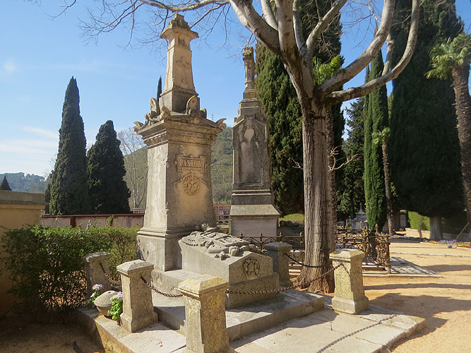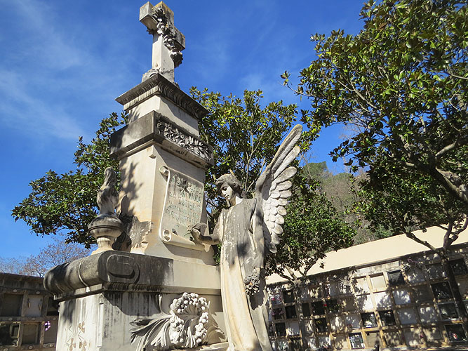 Fruit de la posició social dels difunts es construïren interessants tombes, com les de Josep Carratalà, de Pablo Bosch, de la família Muxach, de la família Salieti, etc. La majoria tenen referències als estils medievals, en especial al gòtic, juntament amb les constants al·lusions a la iconografia funerària de tradició judeocristiana. Dins el conjunt de làpides noucentistes destaquen les dels Fargnoli, els Creuhet, els Colomer, etc.