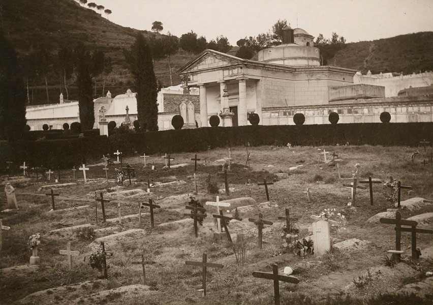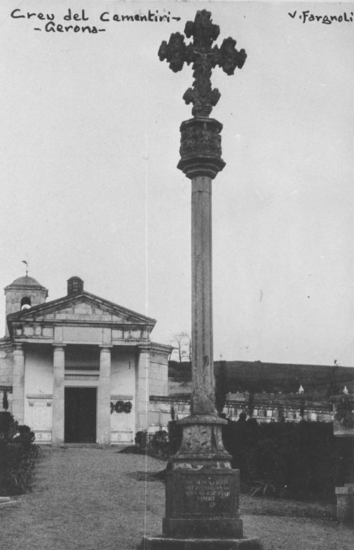 (1) Fins al segle XVIII, la gent era enterrada a l'interior i a l'exterior de les esglésies. L'absis de la catedral, la plaça dels Apòstols o l'interior de l'actual Museu d'Història de la ciutat són mostres vistents d'aquest costum. En plena Guerra del Francès, el 24 d'abril de 1809, es va beneir un nou cementiri "dispuesto un poco más allá del Real Monasterio de Monjas de San Daniel, para enterrar los Cadáveres de los que mueran dentro de Gerona". - (Tornar al text)