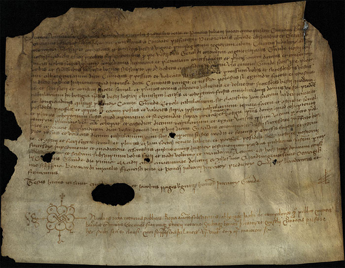 Llicència atorgada per Bernat Miquel, Francesc Terra i Ponç Julià, com a jurats de la ciutat de Girona, a favor de Guerau Coromina, argenter de Girona, i els seus successors, per tal que pugui edificar una taula a la botiga de l’alberg que té al carrer dels Ciutadans, prop de la plaça de les Albergueries. 1480. Fons Ajuntament de Girona - (Ampliar)
