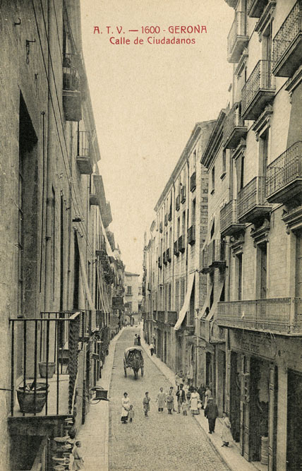 Joan Gaspar Roig i Jalpí, al seu "Resumen historial de las grandezas, y antigüedades de la ciudad de Gerona" (1678), explica que "Ay tambien en Gerona algunas calles muy buenas, de las quales la mejor es la que llamamos de los Ciudadanos, en la qual estan edificadas muchas, y muy principales casas. Es muy ancha igualmente, y no es poco larga. Tiene este nombre, porque en ella vivia antiguamente la mayor parte de los Ciudadanos Honrados de esta Ciudad: y agora con mucha razón podria ser llamada calle de los Cavalleros porque son muchos los que viven en ella" (esmentat per Fabre, op. cit).