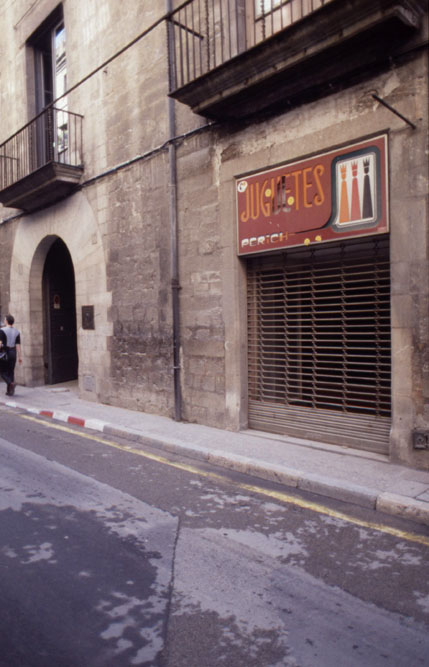 (Ampliar) - Façana de l'establiment comercial Juguetes Perich al carrer Ciutadans. 1990. Jordi S. Carrera. CRDI - Ajuntament de Girona.