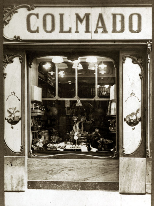(Ampliar) - Aparador modernista del Colmado Gelabert, al carrer Ciutadans. 1900. Fotografia Unal. CRDI - Ajuntament de Girona.